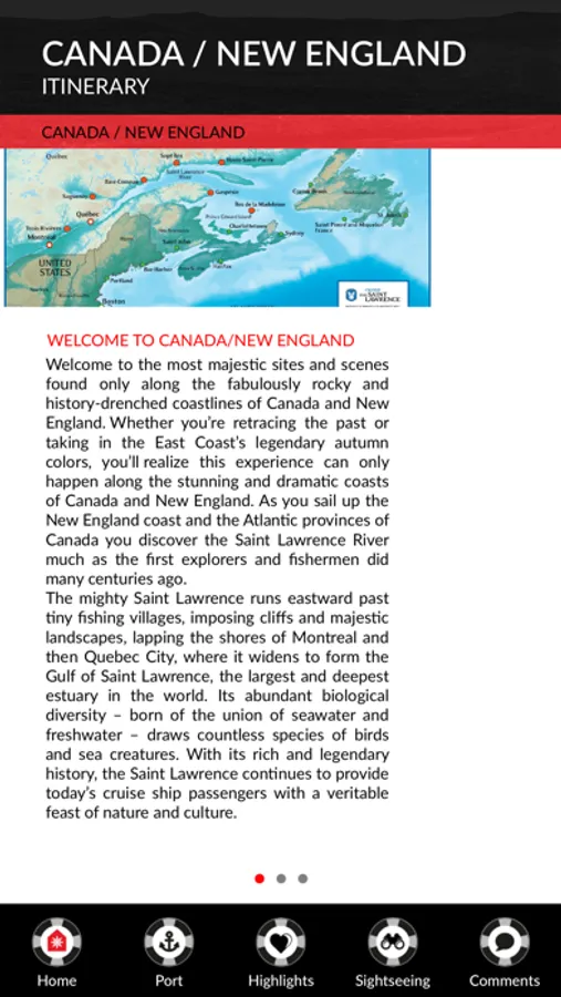 The Gaspé Port of call falls within the Canada/New England itinerary which includes the East Coast, Maritimes and St. Lawrence ports.
