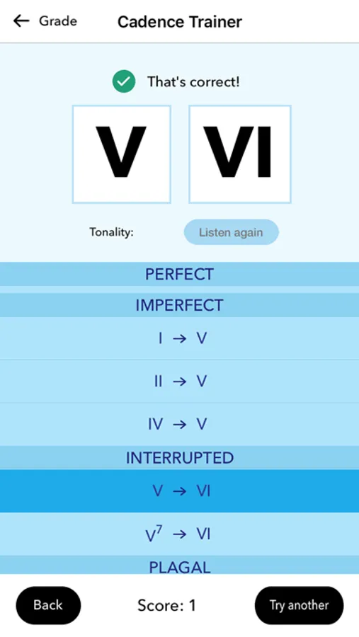 All exercises are fully interactive. Each one gives you the opportunity to repeat the question, or to compare your response to the correct answer and hear the music again . The app also features supporting tools including a cadence trainer, progress tracker and guides to the aural tests in ABRSM graded music exams.
