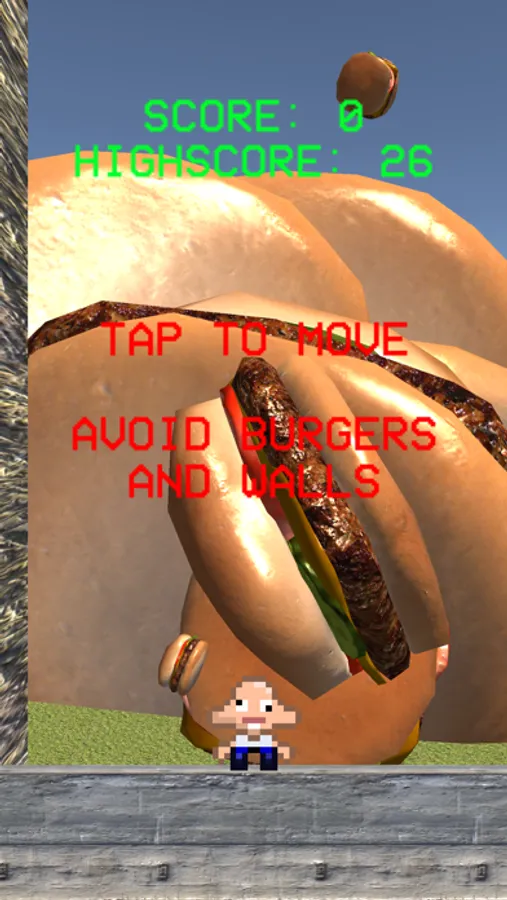 Tap to switch the direction you move in. Avoid falling cheeseburgers and walls.