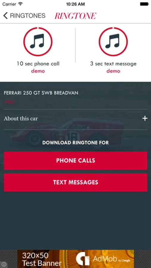 Browse our catalog of various car tones. Our app makes downloading ringtones directly to your iTunes library simple and easy.