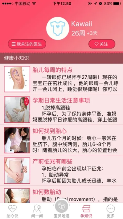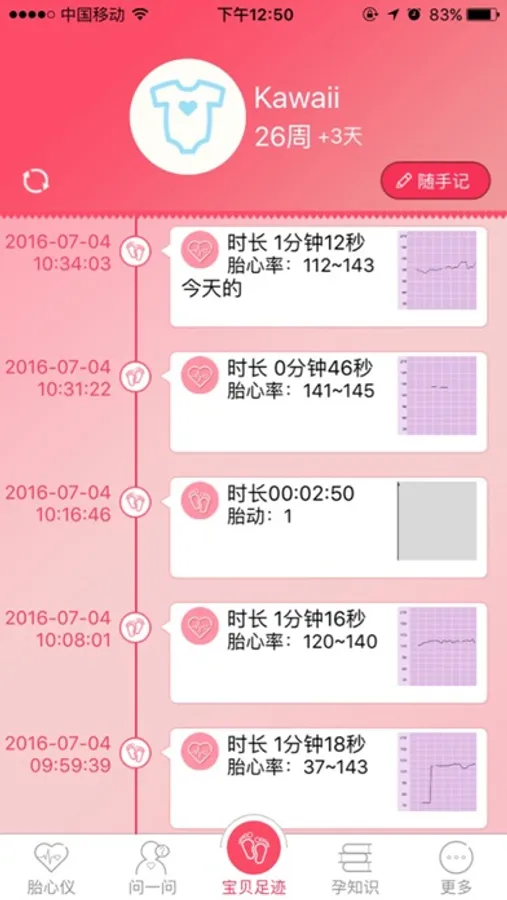 宝贝心语是一款胎心、胎动检测软件,同时也包含其他辅助功能。配合康泰公司Baby Sound A 型超声多普勒胎儿心率仪,用于胎心率的实时检测,随时为准妈妈提供宝宝的健康情况。APP通过特制音频线采集宝宝的胎心信号,并记录胎儿每分钟的心跳转换成心跳波形显示。准妈妈根据检测结果可以判断宝宝健康情况,同时还可以将检测结果上传至社交平台,分享自己的心情。