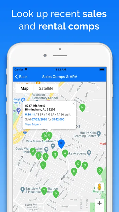 You can look up recent sales and rental comps, create and share detailed reports, compare properties against your purchase criteria and perform reverse valuation analysis to determine your highest offer to the seller.