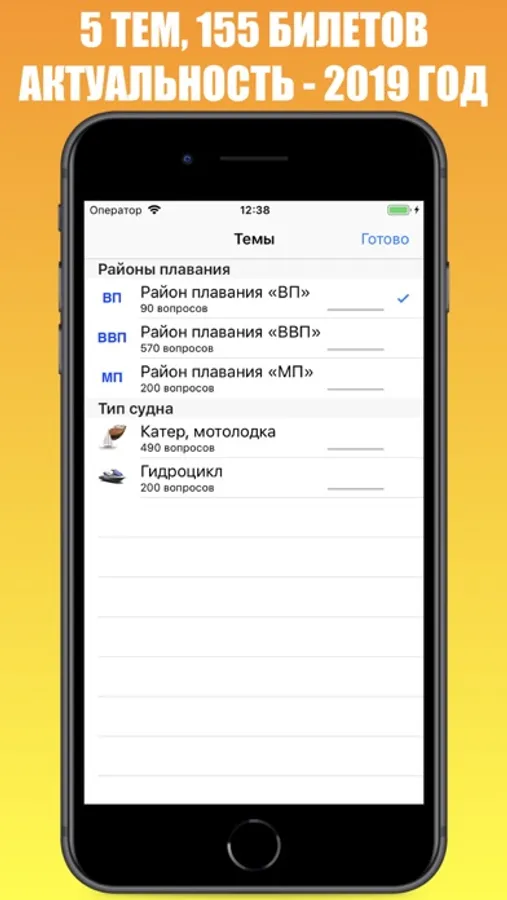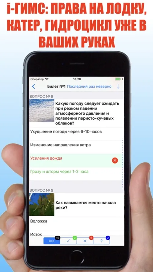 «i-ГИМС» состоит из 155 билетов по теоретическому экзамену ГИМС по районам плавания МП, ВП, ВВП и типи суден: катер, моторную лодку и гидроцикл. Актуальность билетов - 2019 год.