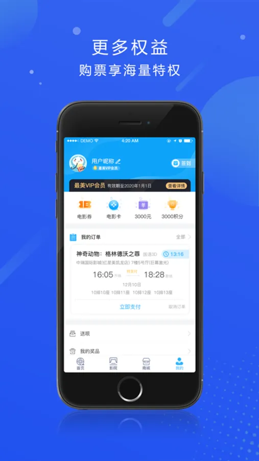 2.卖品在线,告别排队卖品在线购买,价格更优惠,线上购物,线下领取,轻松告别排队。