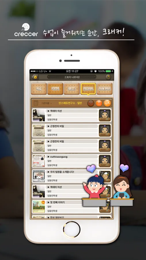 메신저를 기반으로 진행되는 스마트 수업을 통하여 교실 속, 우리들만의 즐거운 이야기를 만들어 나갑니다.