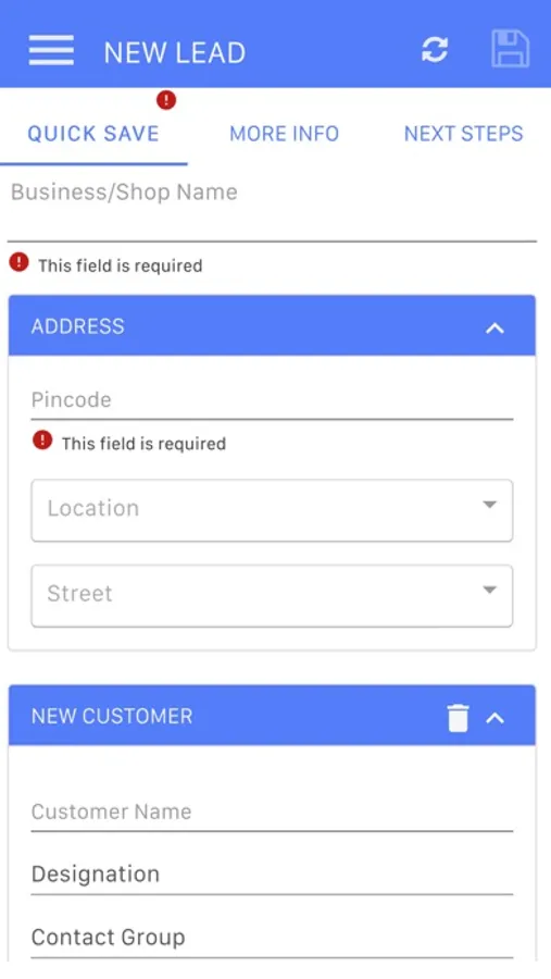 >Create leads with minimal contact information offline and leads get automatically sync when you go online.