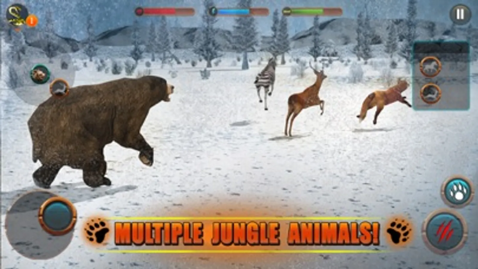 Get into the skin of a burly WILD bear! Shake the forest with your gigantic presence by roaming around in the snowy terrain and foraging for food! Enjoy winter hunting! Use your bulky form and strength to fight a motley crew of animals like lion, rhinos, and snakes. You may be big, but don’t underestimate their prowess. Use smooth attack and survival controls in this realistic simulation of just a slice of the animal world. Complete the given quests to do it all over again; buckle up for your next adventure--rather--sharpen your teeth! (Seriously, aren’t you glad you’re not playing this as a human?)