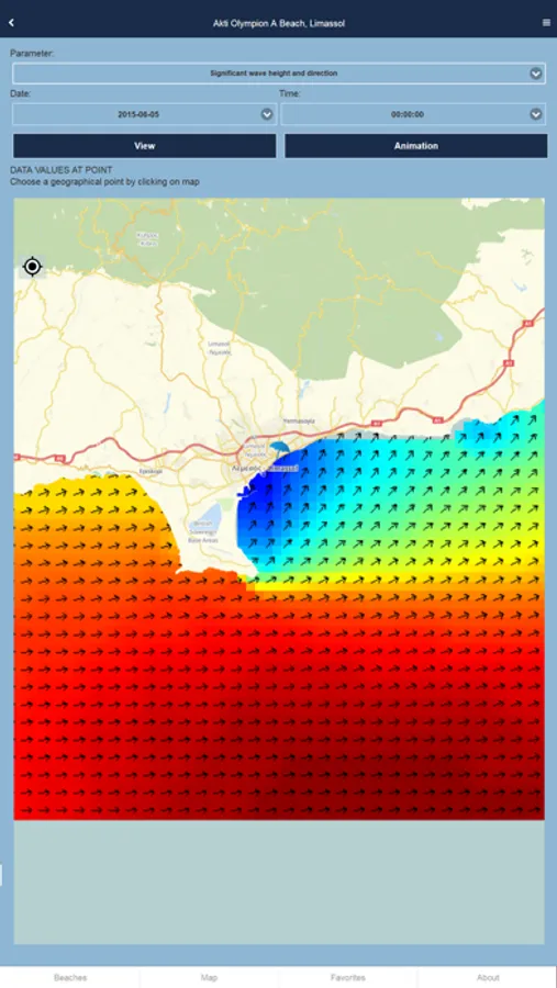 The SeaMobile App provides a handy and dynamic guide to the beaches and marine waters of Cyprus. It gives for each beach local information (description and features), marine forecasts (waves, currents, temperature, salinity and winds) and weather forecasts. This is provided in tables and maps, including animations.
