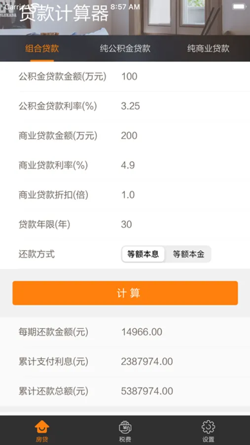 无论公积金贷款,商业贷款,还是组合贷款,不管是等额本息还是等额本金,一个工具全搞定。