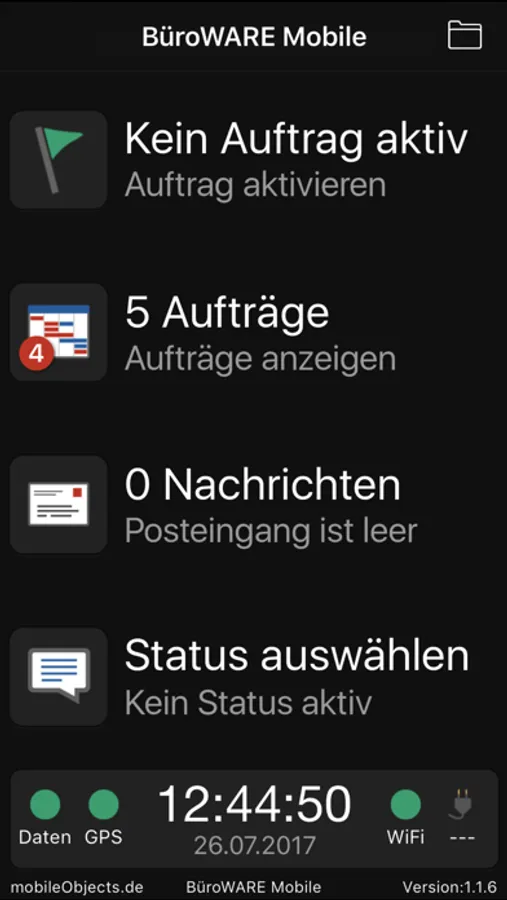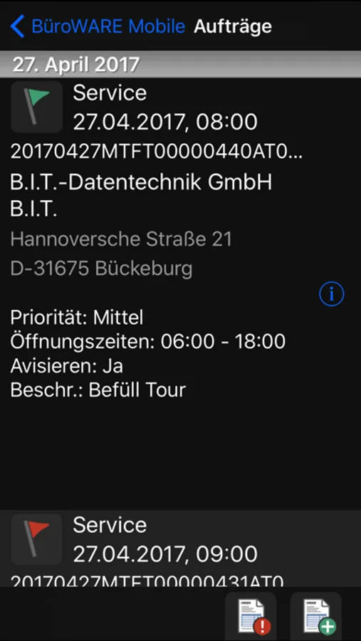 - Aufträge unterwegs am iPhone/iPad sichten und Fahrtzeiten zum Kunden und Einsatzzeiten festhalten