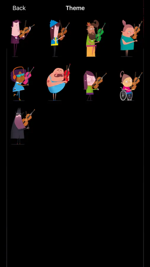 • Make practice more musical and enjoyable by having a virtual violin partner to play along with.