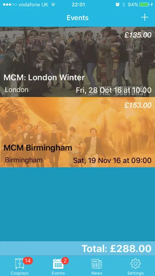 Easily plan your upcoming cosplays and events along with latest news from a conventions Twitter account or their RSS feed.