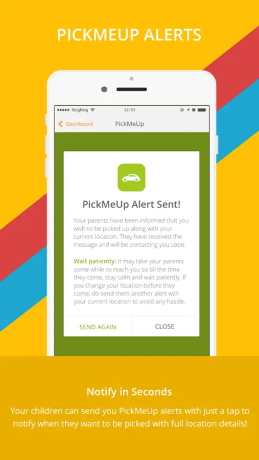 Never forget to pick up your children from school, gym, football practice. They can send PickMeUp Alerts from their iPhone/iPad with complete location info when it’s time to pick them up.