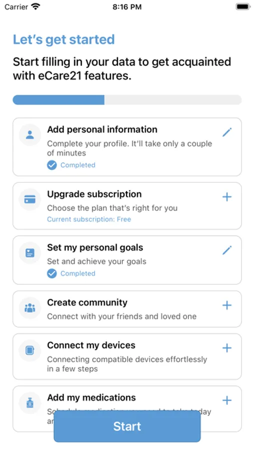 eCare21 is the next thing in personal health, teaming up with doctors to provide you with on the go care. Simplifying your journey to better health by bringing all the metrics you track through any medical devices or wearables (weight, blood pressure, glucose, and more) into one simple app.