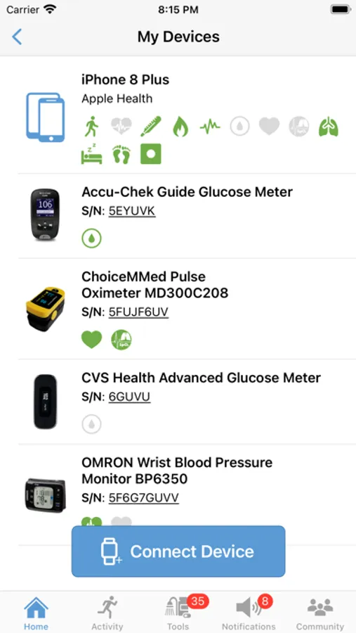eCare21 uses HealthKit to collect your health data so you can share it with your doctors or caregivers.