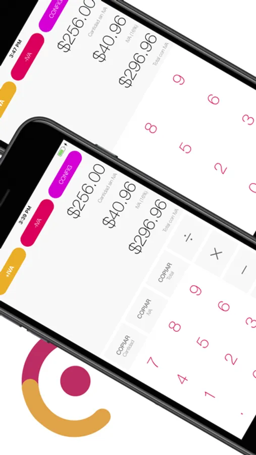 - Calculadora aritmética para realizar sumas, restas, multiplicaciones y divisiones mientras desglosas y calculas el IVA.