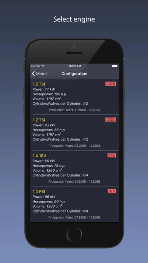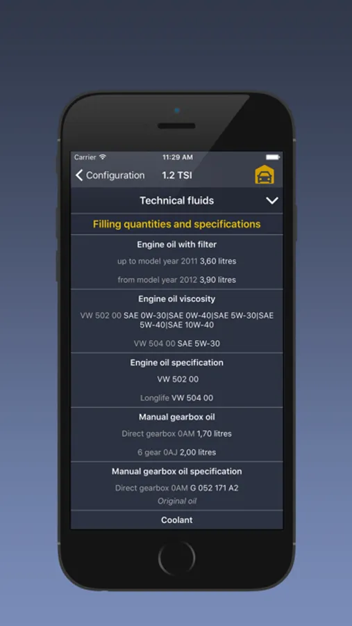 The application contains technical information that will help you in the repair and maintenance of your car.