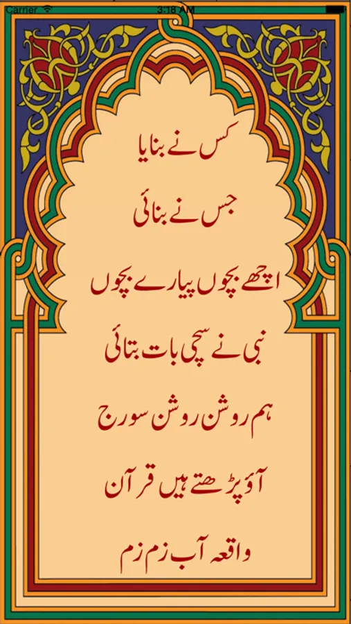 Islamic Rhymes app is collection of muslim nursery rhymes, each illustrated and designed in attractive color. Based on traditional urdu language school level rhymes, this collection is intended to inculcate an awareness of Islamic values and develop a sense of Muslim self-confidence in young children. Also an endearing collection of nursery rhymes for young Muslims to learn and celebrate some of the beautiful ways of Islam.