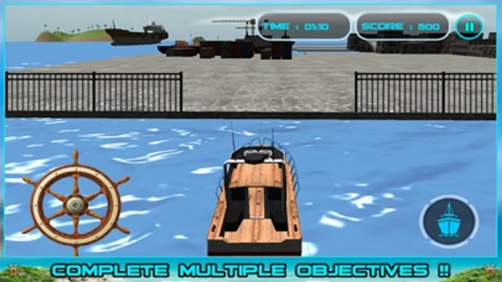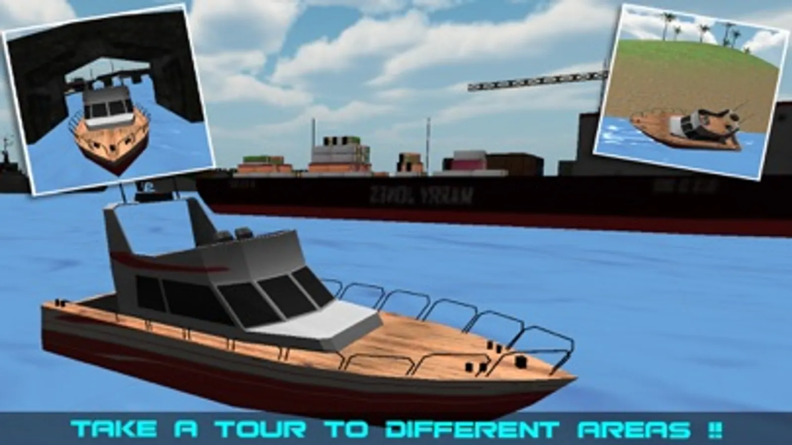 Play as small yacht captain and steer the boat in beautiful city location to pickup and drop travelers and passengers from one port to next harbor. Enjoy driving boat in the amazing city without drowning and crashing your boat. You also get chance to control mega cargo ship park it on city dockyard and use tower crane to lift heavy freight and load on the cargo ship. Enjoy 10 challenging missions to show your cruise ship captain skills.