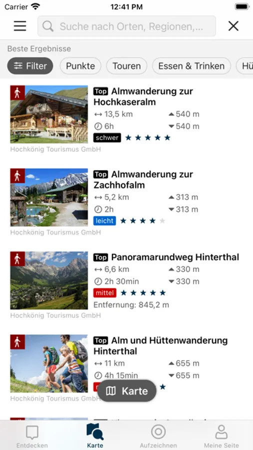Die Hochkönig-App bietet Ihnen umfangreiche Tourenangebote für eine der schönsten Urlaubsregionen Österreichs - die Region Hochkönig im Salzburger Land.