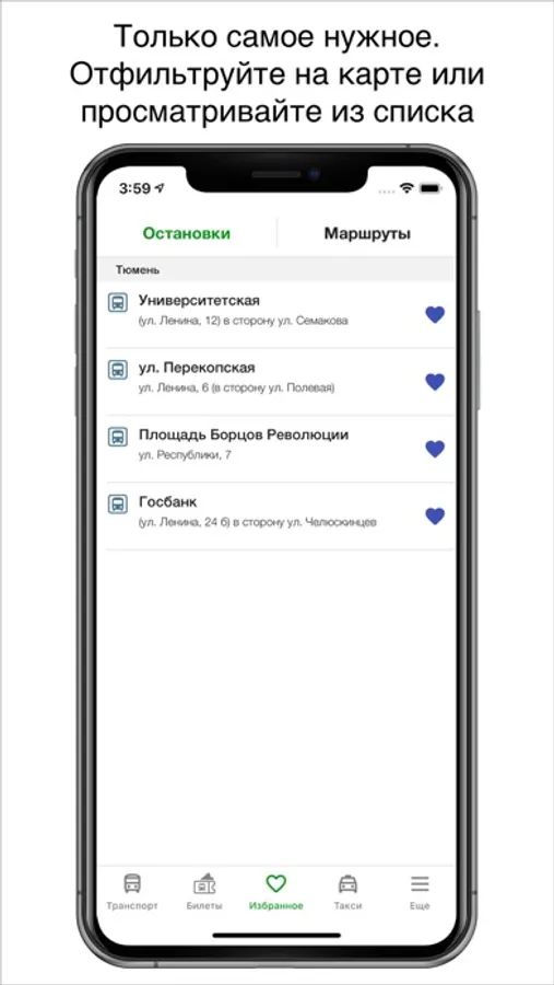 * Добавить понравившиеся Вам варианты проезда, остановки или маршруты в избранное.