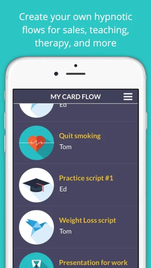My Card Flow Feature: combine your hypnotic language cards into hypnotic flows for a speech or presentation, therapy session, interview, sales pitch, classroom lesson, and more!