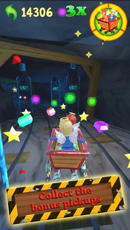The two angel friends, Fay and Fin are heading out for new adventures, this time in a rickety mine cart, speeding along treacherous tracks filled with clingy scoundrels, dynamite and other crazy challenges! Fire away at obstacles, steer clear of traps and, collect gems, stars and other valuables!