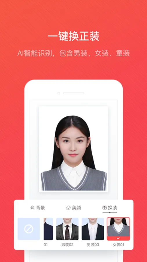 新增证件照美颜!新增证件照一键换正装!小伙伴们再也不用担心穿的不正式啦~