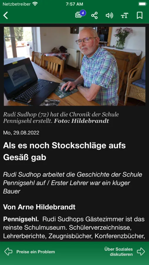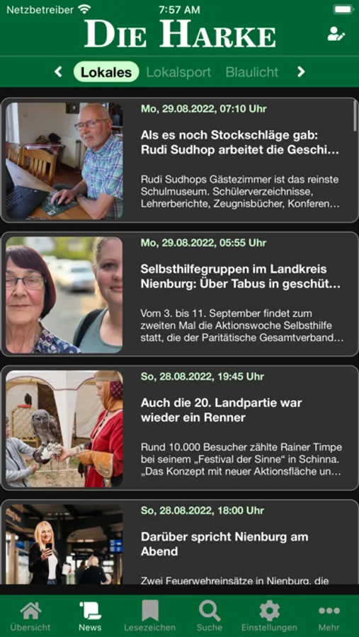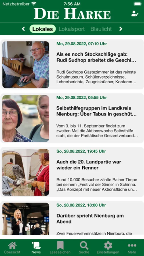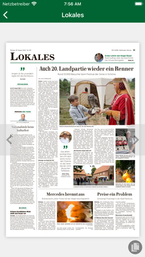 Du liest alle redaktionellen Inhalte deiner Tageszeitung in optimierter Darstellung in unserem E-Paper auf deinem Tablet, Smartphone oder Computer, schaust dir Bildergalerien oder Video zu Festen und Veranstaltungen an. Im News-Bereich bleibst du bei unseren Top-Meldungen immer auf dem Laufenden, was in Stadt und Landkreis Nienburg sowie der angrenzenden Region passiert.