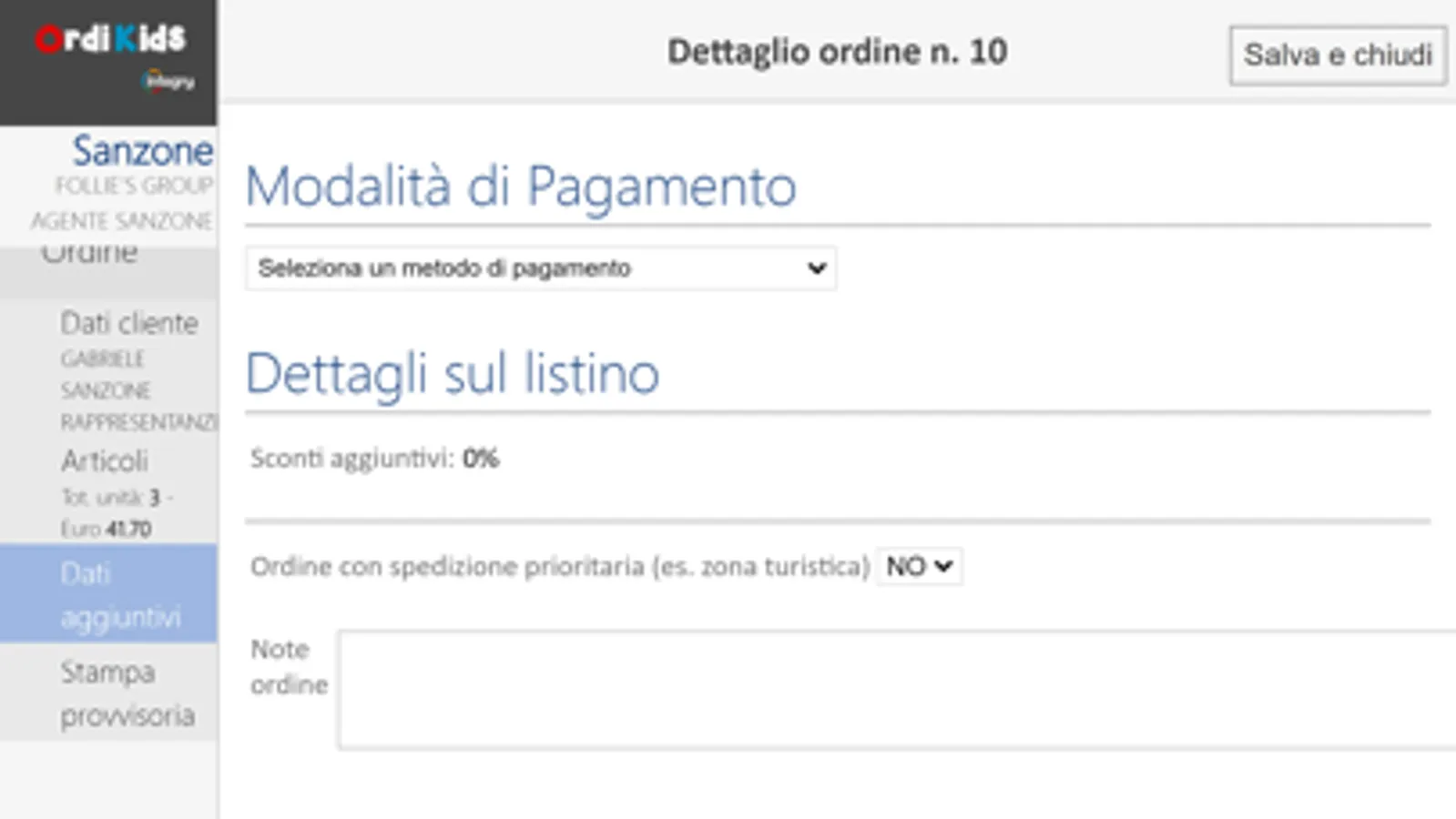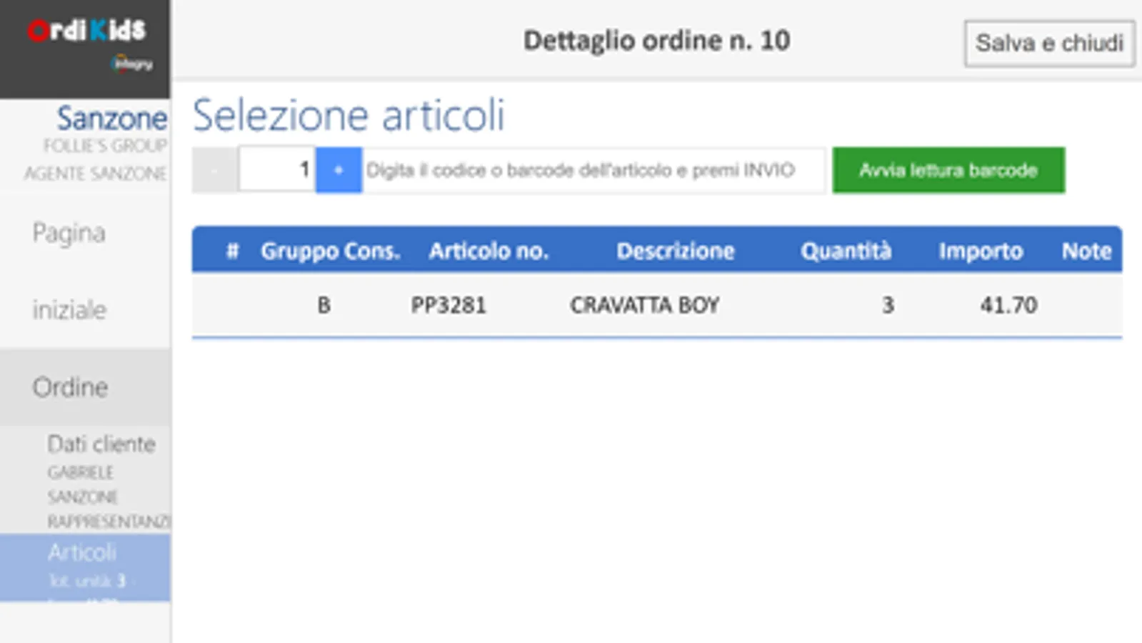 OrdiKids permette agli agenti della vostra azienda di raccogliere ordini per poi trasmetterli direttamente al gestionale Integry Textiles.