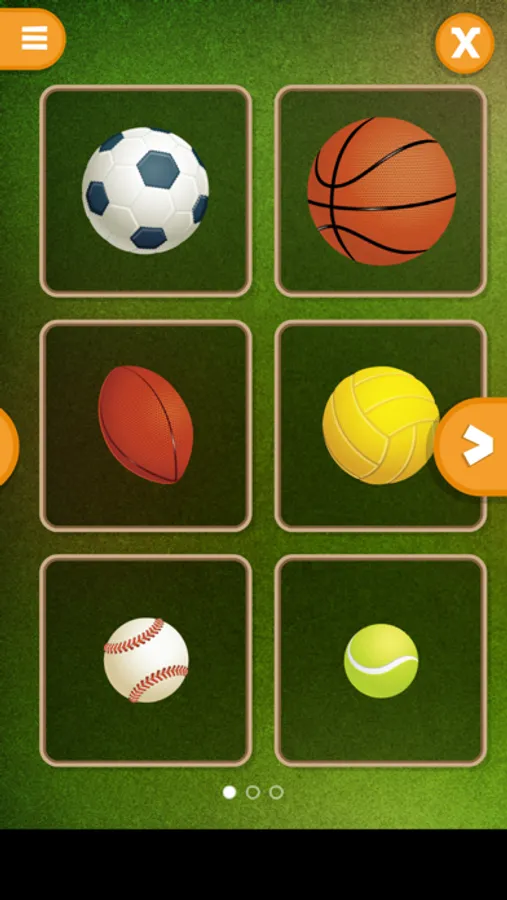 The app is designed in different screens where children select an image and a voice will tell them the name of the chosen sport.