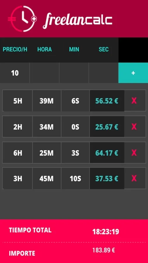 ¿Freelance o autónomo y cobras por hora? Freelancalc suma el tiempo que le has dedicado a tu cliente y calcula el importe total a facturar en función del precio que estipules.