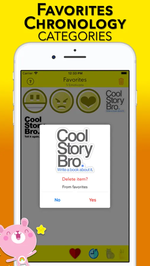 Long touch: adds the emoticons from your Favorites / remove the emoticon from Favorites or Chronology