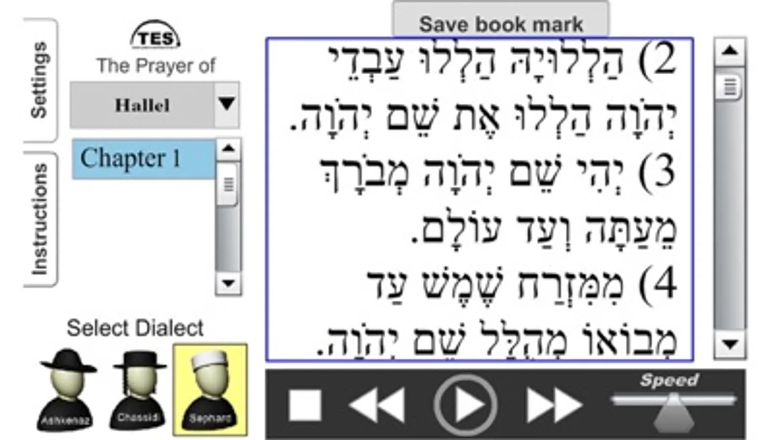 Ability to Select Hebrew Dialect from Ashkenaz, Chassidi & Sephardic
