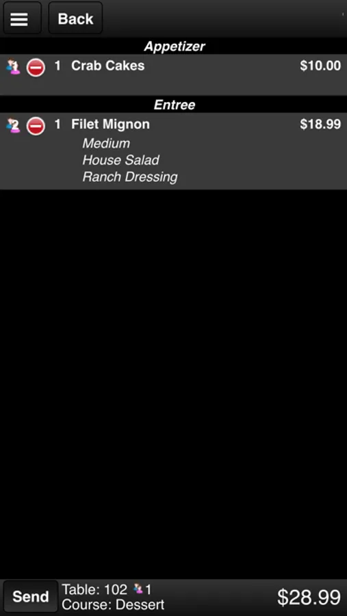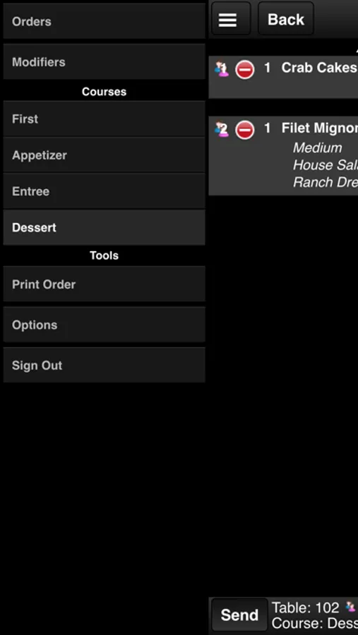 - Items print to the kitchen or bar printers appropriately.