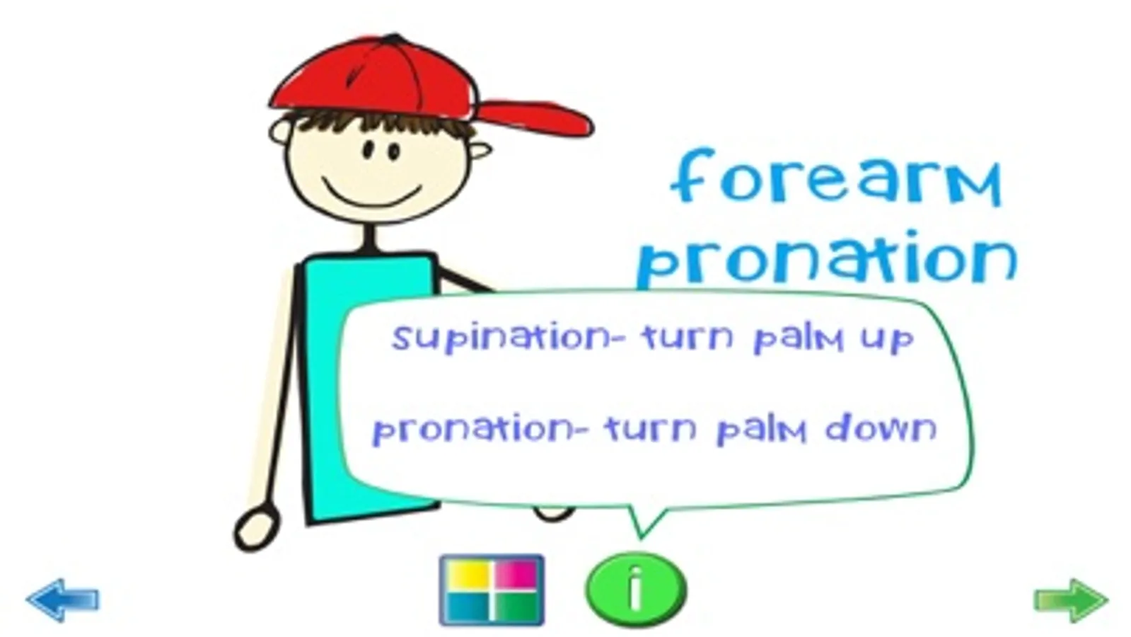 The first of its kind, this app helps develop gross motor strength, balance, and coordination using exercises in flash card form, complete with animations. The app contains some total body movements while focusing on shoulder, wrist, elbow, and finger movement.