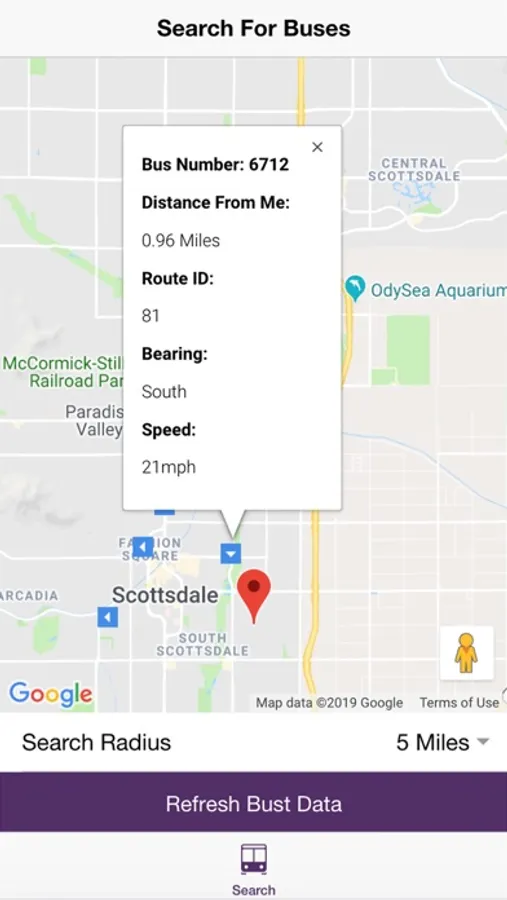 Bus Plus allows you to look up real time location of all buses running for Valley Metro in the greater Phoenix Metro area of Arizona. Each bus contains data on bus number, route number, bearing, and speed.