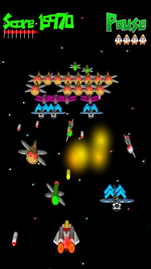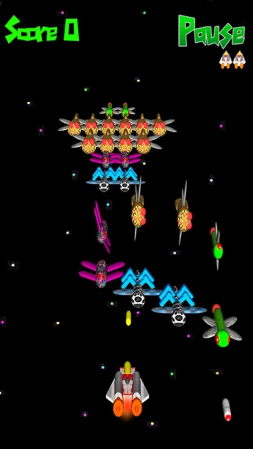 Can you defeat wave after wave of dazzling alien invaders to save the galaxy. Blast the invaders as they spin and whirl through space in this old school arcade invader game. After 4 fantastic waves you'll get a bonus round, score lots of points to insure you get that next free life.
