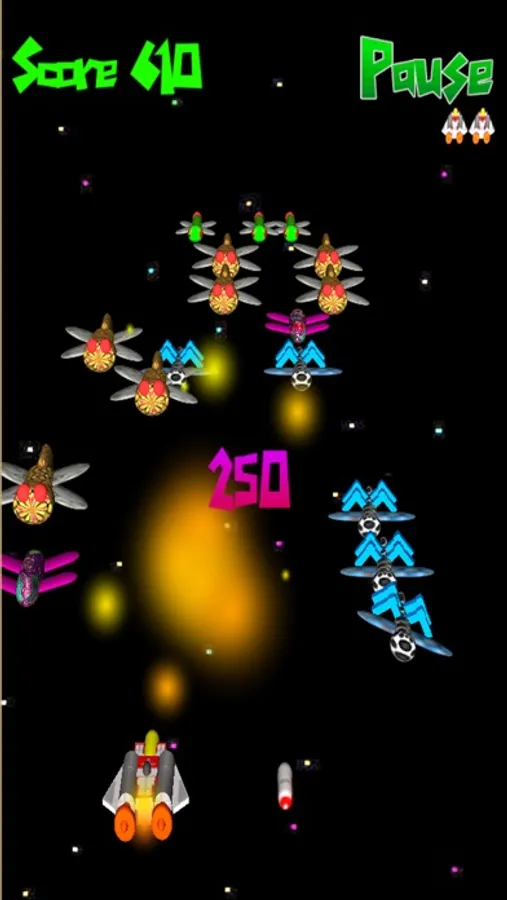 To control your space ship, pop into the settings screen and choose from tilt action or on screen buttons. Stay calm, don't panic, keep your hair on and you may just survive.