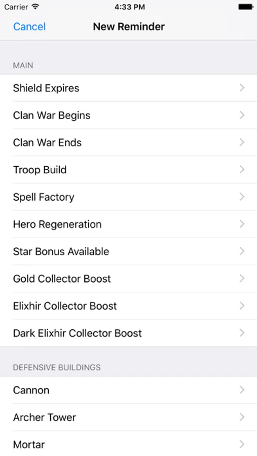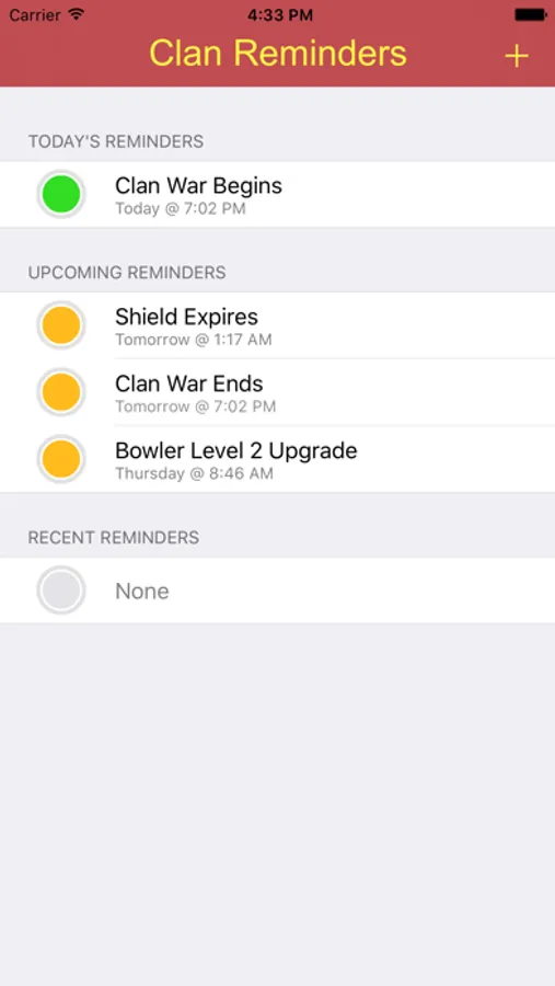 Clan Reminders for Clash of Clans allows you to set reminders for your Clash of Clan activities: