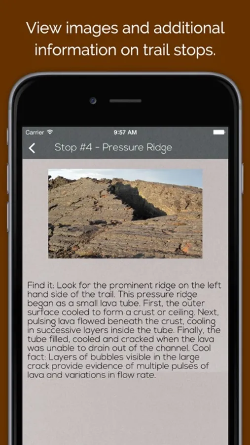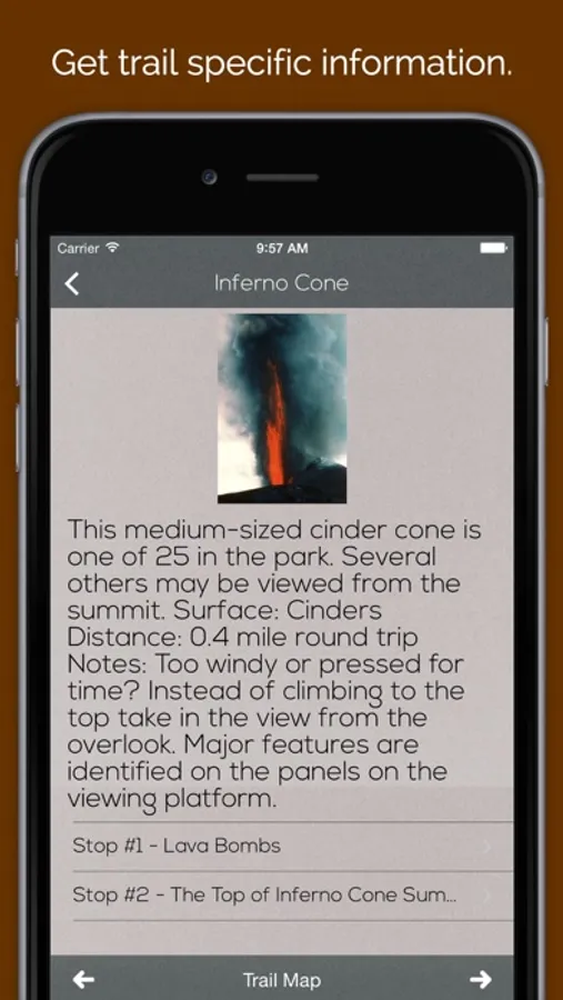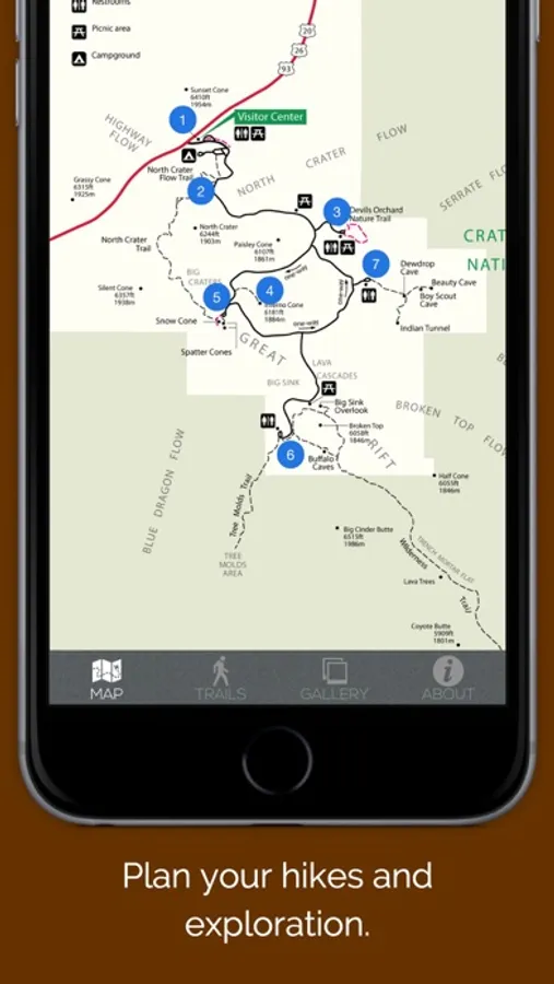 Explore the geology of Craters of the Moon National Monument with this guided tour of the main trails along the loop drive. The app includes trail maps, photos, and descriptions of important features that are visible throughout this volcanic wonderland.
