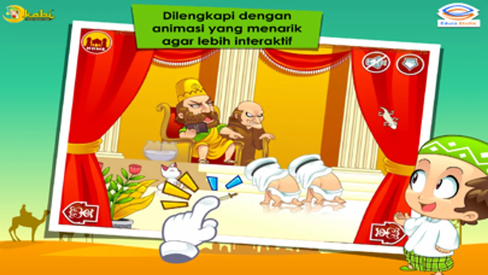 Semua objek yang ada pada halaman cerita, bisa disentuh dan beranimasi. Sehingga anak-anak akan lebih tertarik untuk membaca.