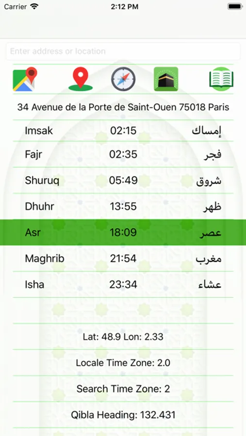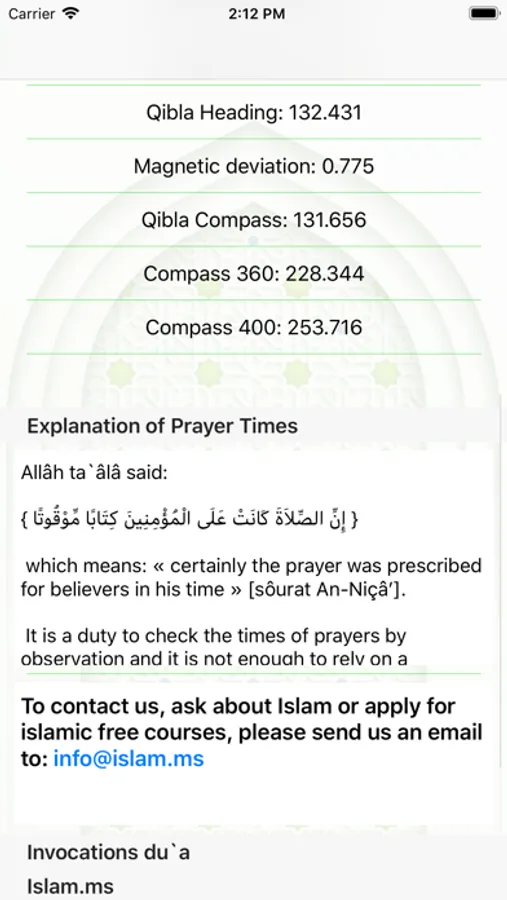 - Possibility of moving the marker on the map and having the direction of the Qiblah as well as the number of the compass