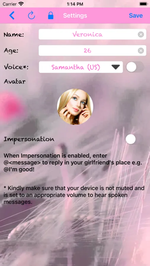 She'll engage into casual conversations with you, ask and answer your questions! She even speaks! You may also customize the name, age and avatar of the girl! Benefits compared to an actual girlfriend: