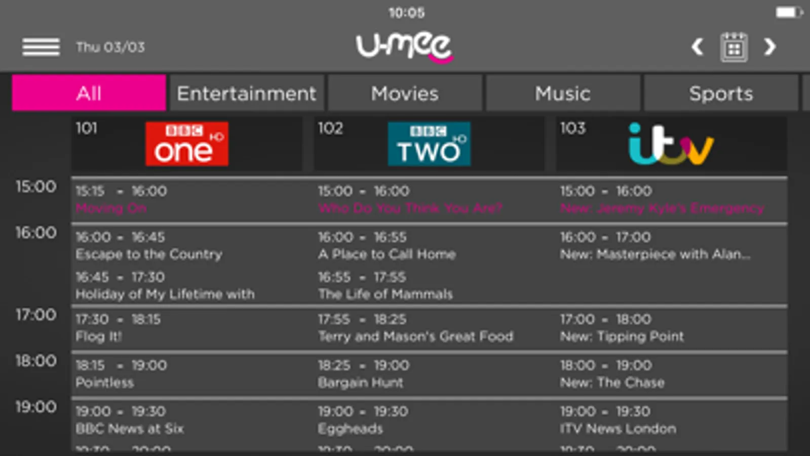 Access your u-mee TV+Go service on your iPhone, iPad or iPod Touch wherever you have access to wi-fi or 3G/4G/5G data (subject to service provider restrictions - network data charges may apply). An active u-mee TV+Go subscription is required (only available in Gibraltar)