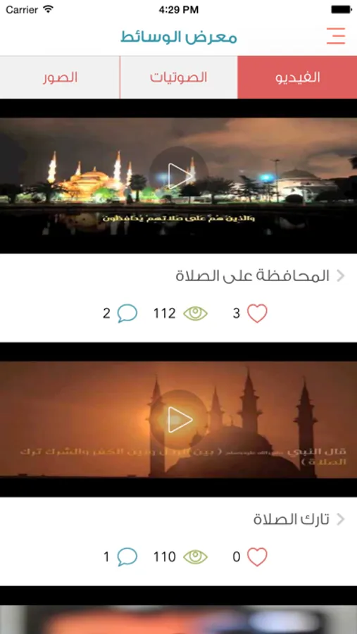 ج. صوتيات قصيرة مفهرسة بعناوين مختلفة من خواطر وفتاوى وأناشيد وقصائد وكلمات وتلاوات وغيرها.