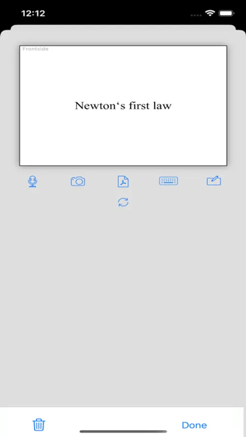 On the front and back of a card, you can enter a question and answer in the form of plain text, audio files, or pictures. In addition, you can insert (cropped) PDF files via iCloud as formatted text. This way, you can also use text that has been generated with a formula editor.