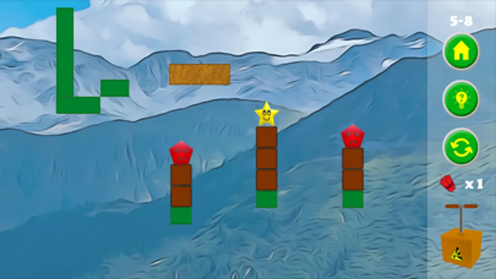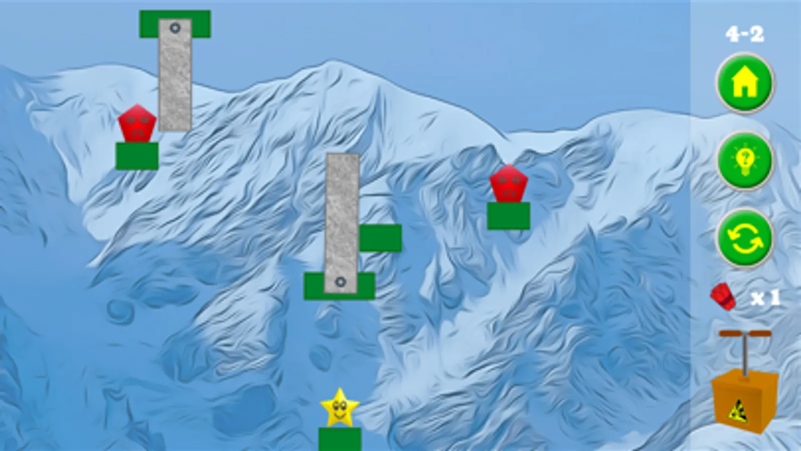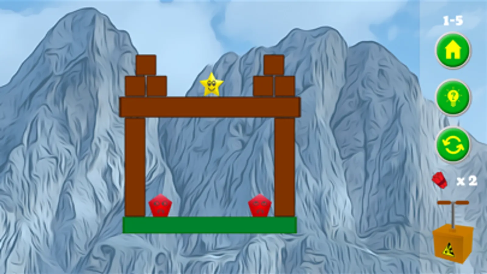 Place the bombs and dynamites on the grid in a way to only blast the five-sided polygons and keep the cute stars untouched. You just need to tap on the detonator to initiate the explosion. To earn a coin for a level, try to blast the bad guy away using as few explosions as possible.