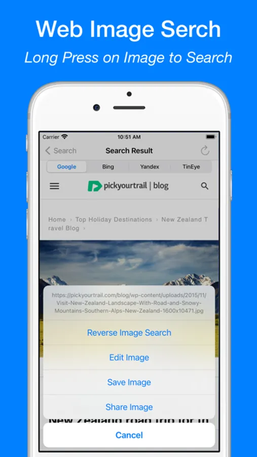 - Long press on image to search in Web Browser.