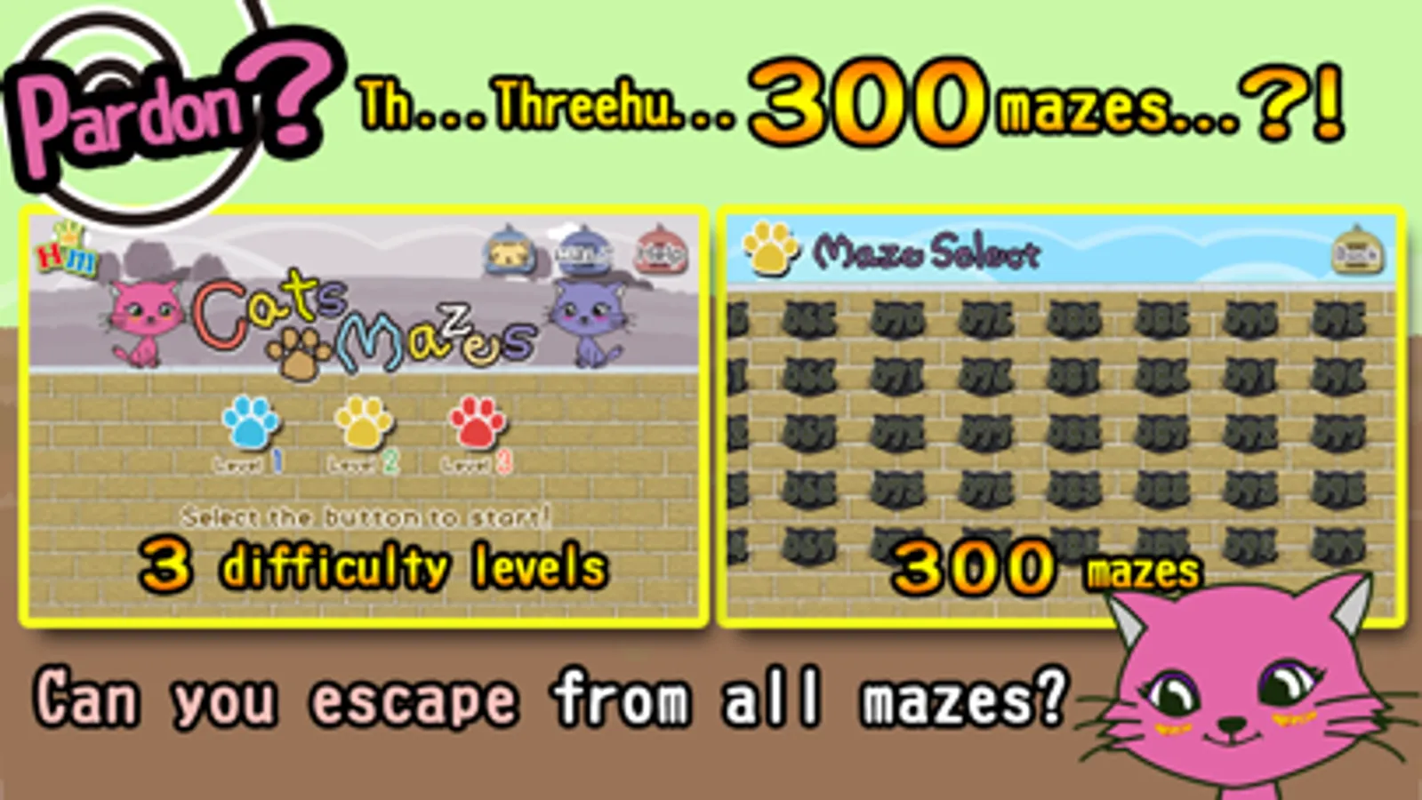 Escape all cats from the maze! (3 difficulties 300 mazes)